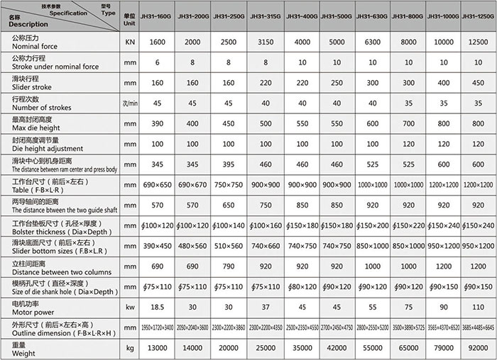 J31-100/125/160闭式热锻造压力机
